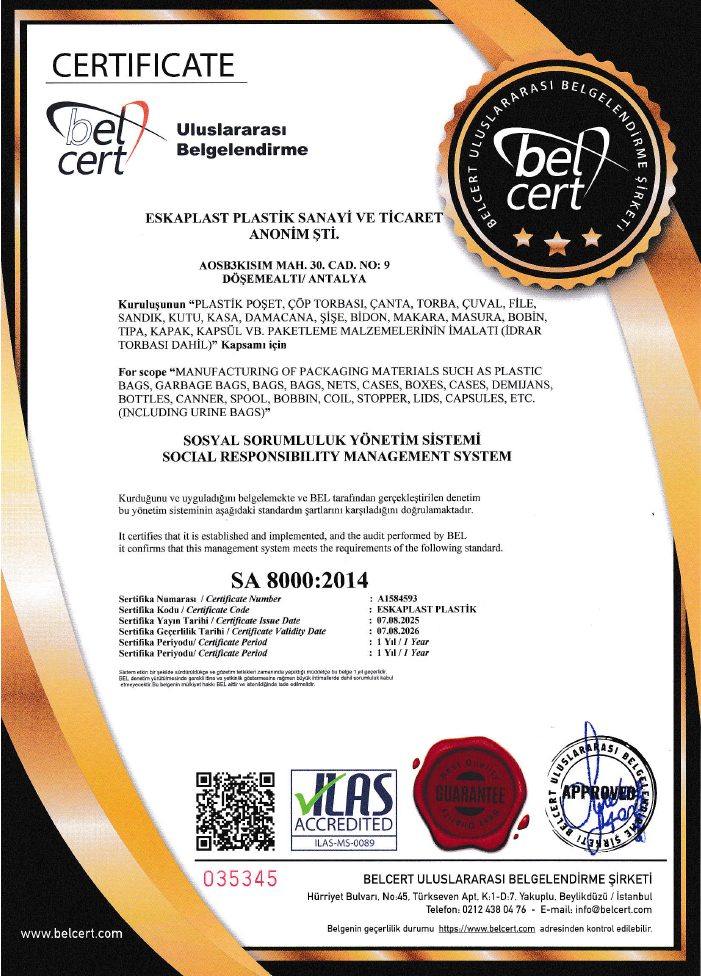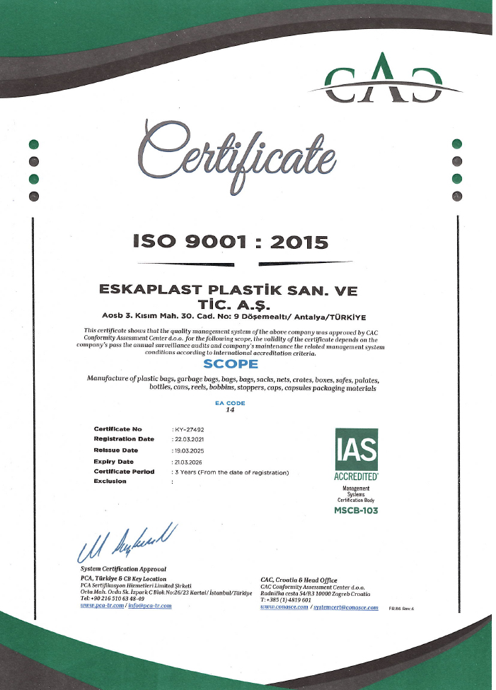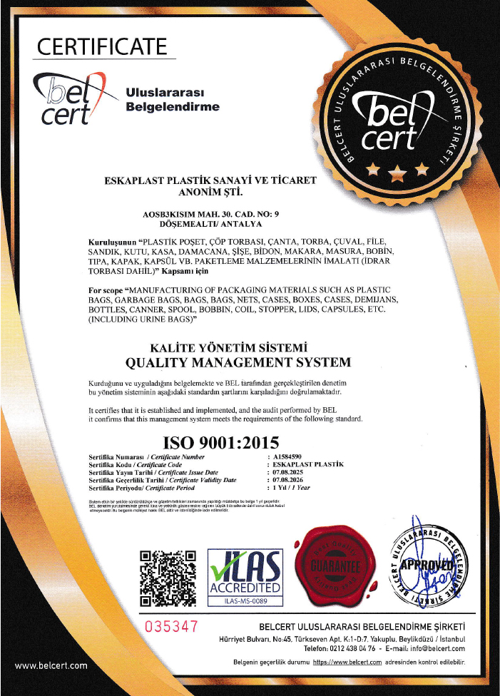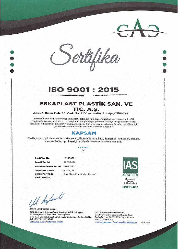 We are proud to be the locomotive of the sector with our trust and quality for more than 30 years by following the developing technology in the Turkish plastics sector at home and abroad with 100% recyclable plastic packaging that does not harm the environment by contributing to the zero waste project in line with this purpose, Eskaplast Plastik, which has made continuous development and success a principle, together with our modern operator understanding, quality machines and experienced staff.
